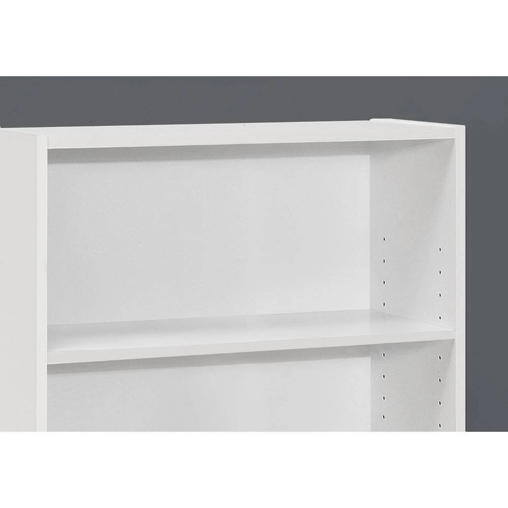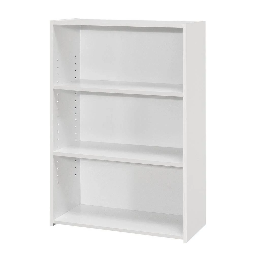 This 3-shelf bookcase in a simple, clean and space-saving design makes it a versatile storage option for any room in your home. The solid adjustable shelving allows for various sized objects to be displayed in your own creative way. Constructed from engineered materials in a fresh white laminate finish, this transitional style bookcase could be used in an entryway to store all your shoes, or in a living room, home office, or bedroom to place books, toys and decorative objects. Assembly is required.