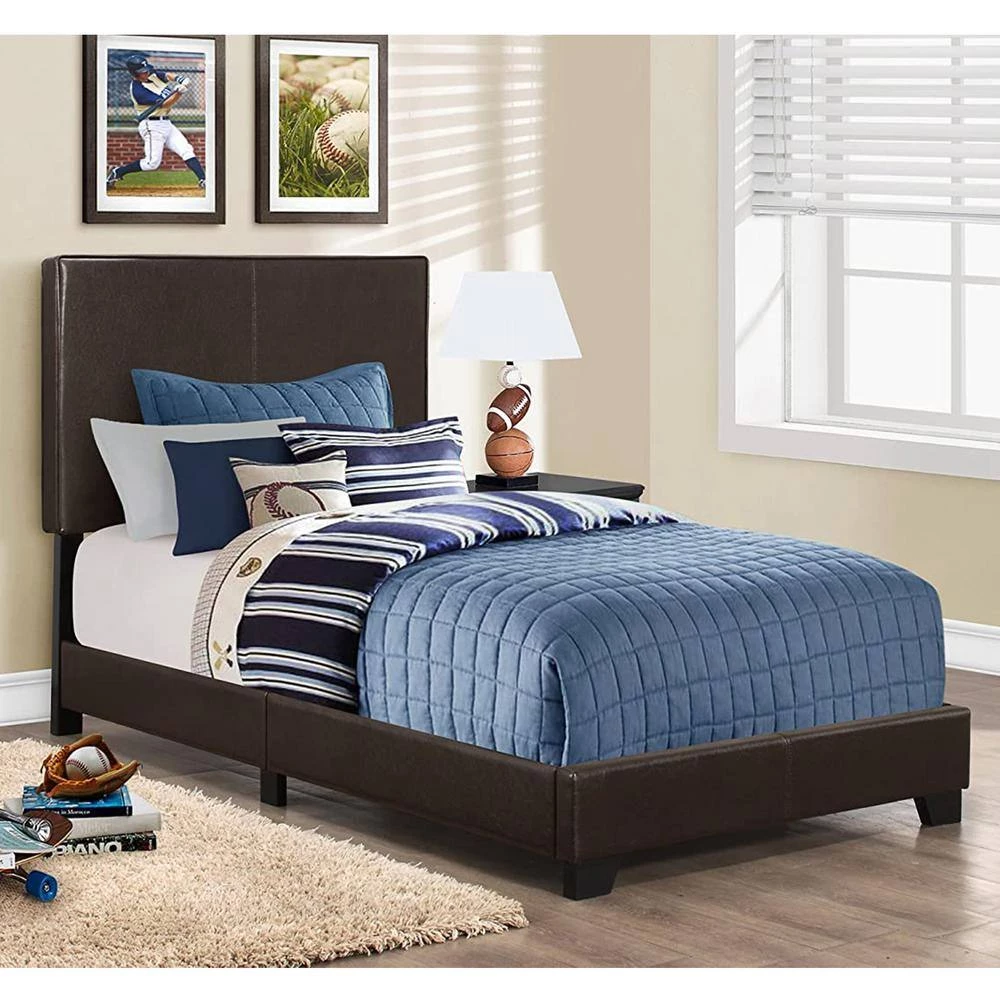 Beautify your home, while enabling yourself the utmost comfort, with this classy and contemporary twin size bed. This bed is a high quality piece, which has a marvelous design that will bring versatility and diversity to the look and feel of your home. It in. s made from high grade solid wood, MDF and foam, which also contributes to its overall gorgeous appearance, while still giving you all the stability you in. Will ever need. Furthermore, it has a captivating leather look as well. As for measurements, they in. re 81 in. for height, 43 in. for width and 45 in. for depth and it weighs 52 lbs. This lovely bed will be the perfect piece for any decor.