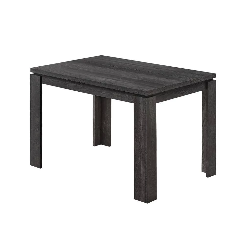 Looking for rustic. Looking for contemporary. How about both. This dark grey thick-paneled kitchen table features a unique reclaimed wood surface to offer you the perfect farmhouse style for your new place. The modern dining table also features open block. The wholesome style of this dining table is something worthy of attention. The graceful elegance makes every meal a celebration. Add warmth and brightness to your kitchen or dining area. Featuring an all wood construction, this charming Dining Table is sure to look great in any setting.