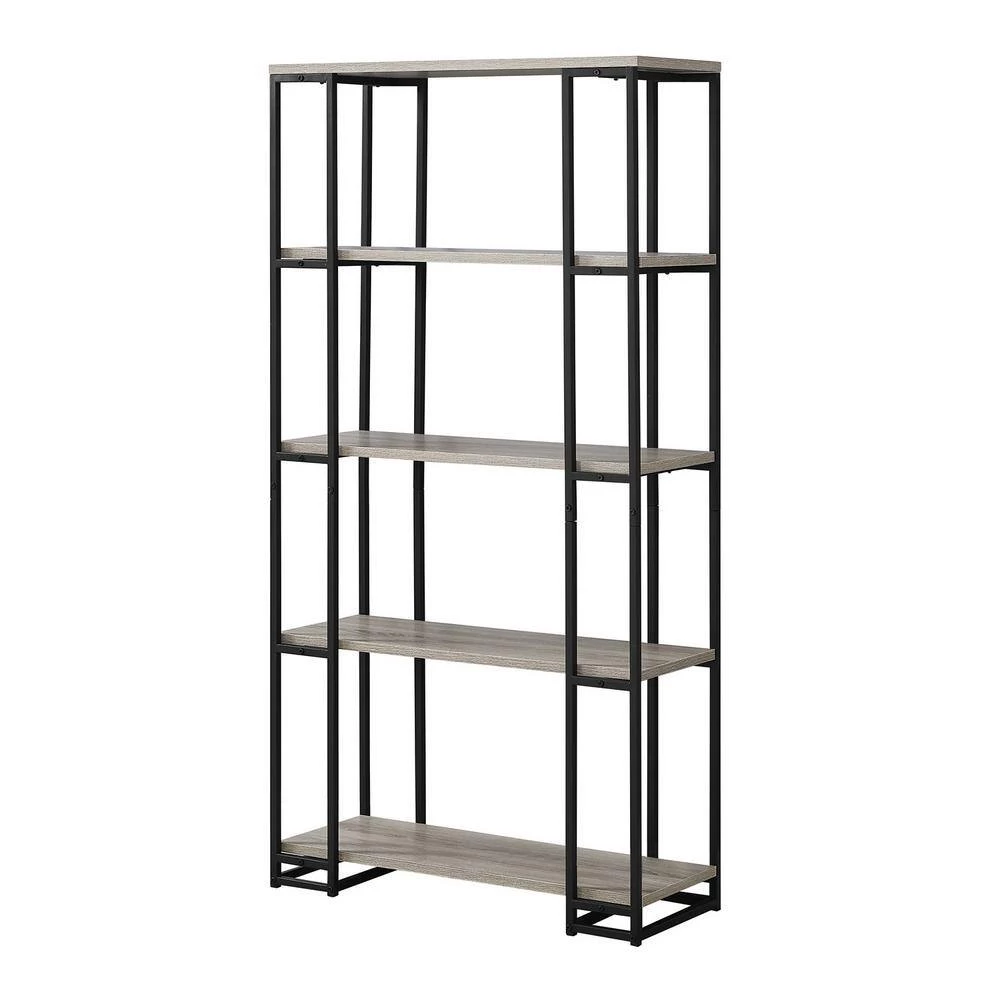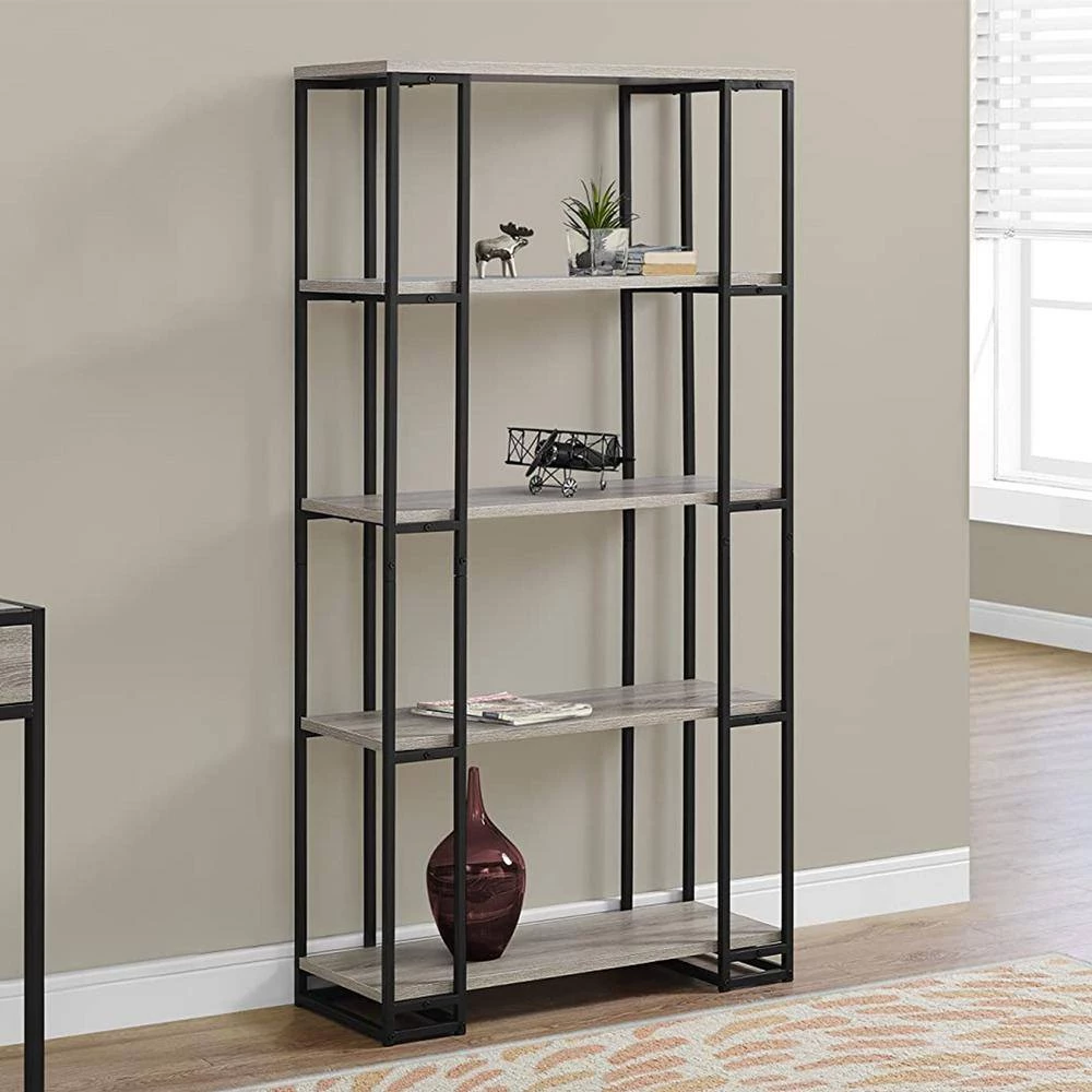Resurrect lifeless rooms with this intriguing bookcase and it unique style. Its modern design will surely be a magnificent decoration. It in. s an incredibly well-made from MDF and metal. This bookcase has four shelves, so it in. s a great place on which to display your books, photos, trophies and collector items. It is 62 in. high, 12.5 in. wide, 32 in. deep and weighs 50 lbs. This bookcase is a brilliant contemporary shelving unit, which will make any room look better simply by being there. It would fit great in your office, living room, or bedroom.