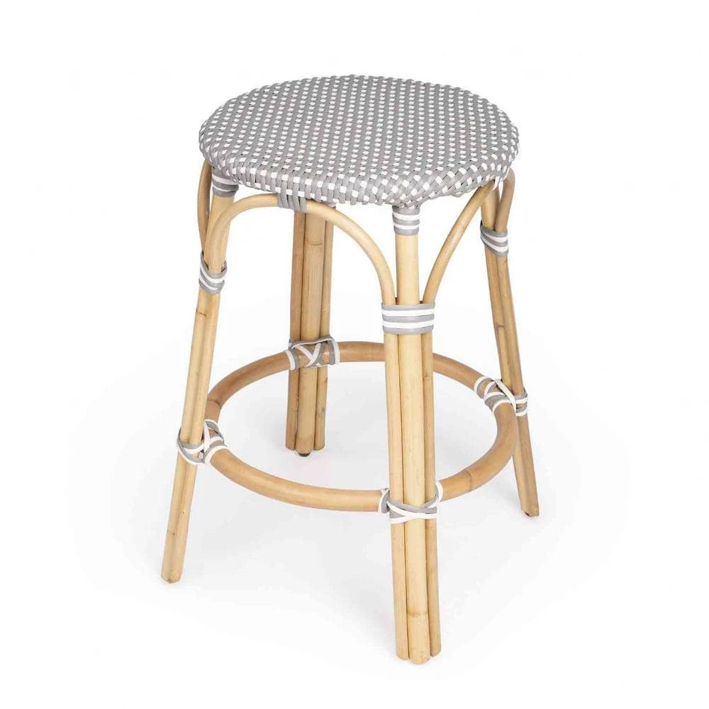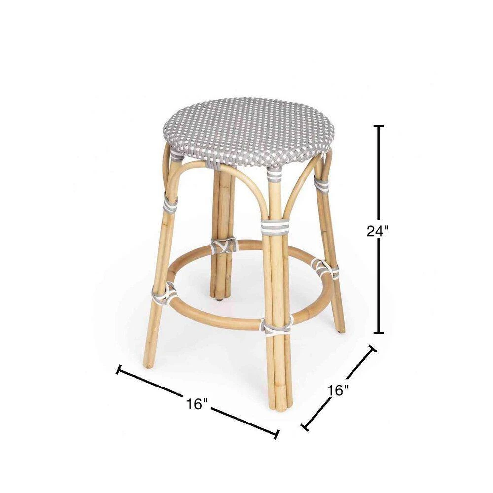 Delightfully crafted the Grey and White Rattan Counter Stool is an object of casual sophistication. This weather resistant woven plastic has been weaved into a gorgeous pattern of grey and white portraying a mosaic finish. The tightly knotted bent rattan base and footrest exemplifies durability. It’s versatile nature allows you to pair it against your perfect kitchen counter or even your patio during those summer breezy days. Lightweight in character the stool can be easily mobilized from room to room to create space or even offer an extra seat. 24 in. x 16 in. x 16 in.