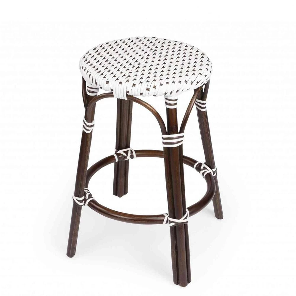 Delightfully crafted the Brown and White Rattan Counter Stool is an object of casual sophistication. This weather resistant woven plastic has been weaved into a gorgeous pattern of brown and white portraying a mosaic finish. The tightly knotted bent rattan base and footrest exemplifies durability. It’s versatile nature allows you to pair it against your perfect kitchen counter or even your patio during those summer breezy days. Lightweight in character the stool can be easily mobilized from room to room to create space or even offer an extra seat. 24 in. x 16 in. x 16 in.