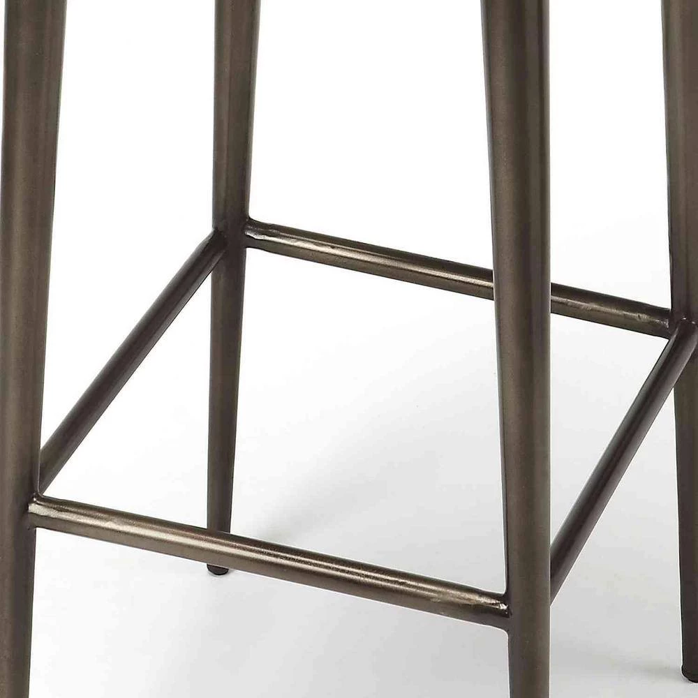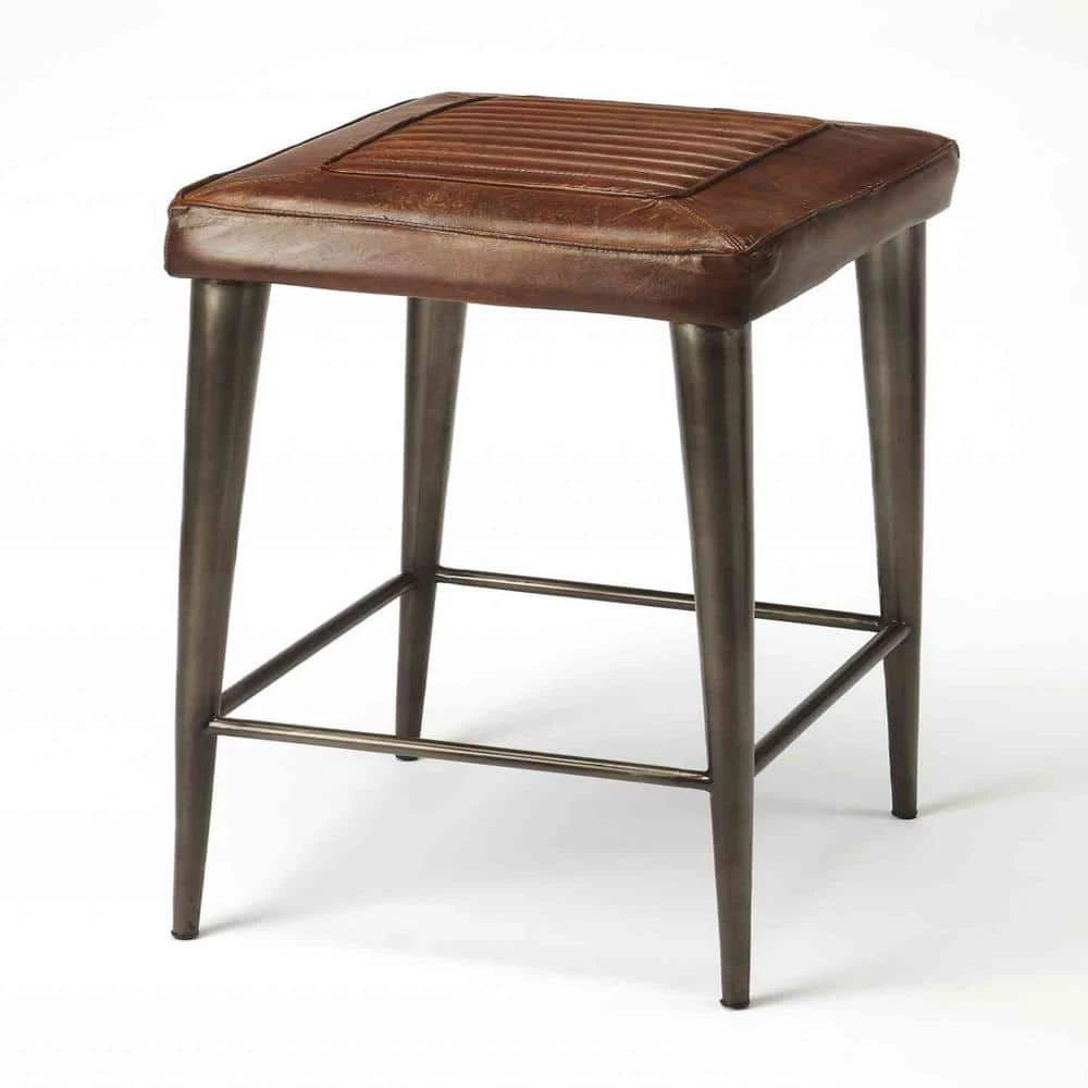 Looking to add a hint of rusticity to your decor, then the Brown Leather Bar Stool is just for you. The combination of plus brown leather seating and long iron tapered legs gives it a striking appearance. Neutral in color allows the stool to be perfectly paired with any kind of vintage or rustic setup. It can be easily mobilized from room to room creating space or even pulled up as an additional seat. 32 in. x 17 in. x 16 in.