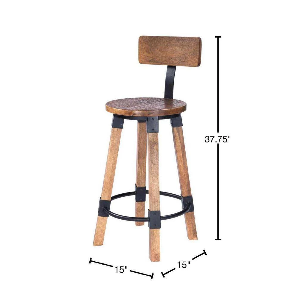 Industrial and chic in character the Sturdy Wood and Metal Counter Stool certainly adds style to your dull space. The textured wood can be easily distinguished from the black metal support. Combined with four strong legs, a circular foot support and a backrest, it ensures maximum comfort. 37.75 in. x 15 in. x 15 in.