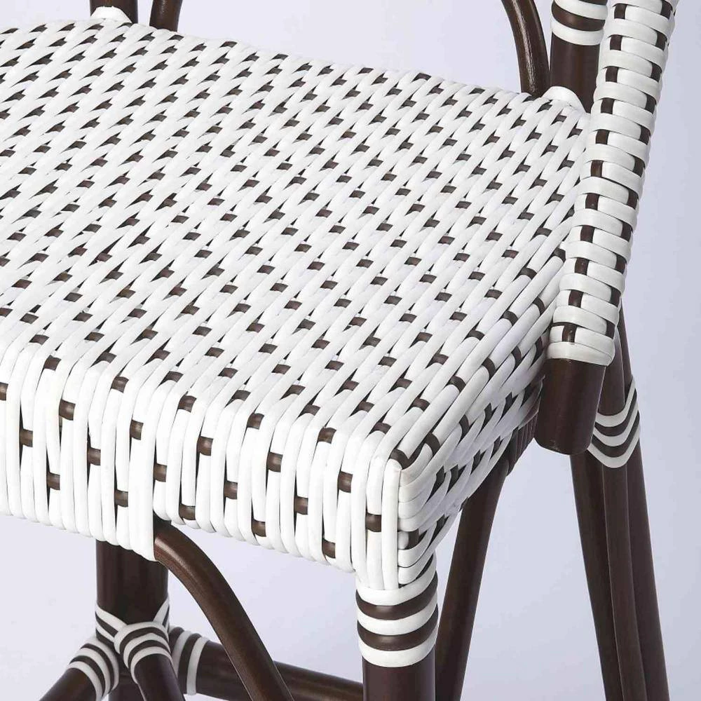 Reminiscent of a Parisian Cafe the White and Chocolate Rattan Counter Stool is practically a tower of beaming beauty. With a hint of simplicity and a dash of contemporary this poly weaved vision is perfection in design. The pattern weaved seating and pattern weaved arm rest along with the knotted beams encapsulate this model. Classic or modern, this stool compliments just about any setup from home to barn. It’s strong rattan legs have been intricately carved to deliver durability and support. 41.25 in. x 17 in. x 18.5 in.