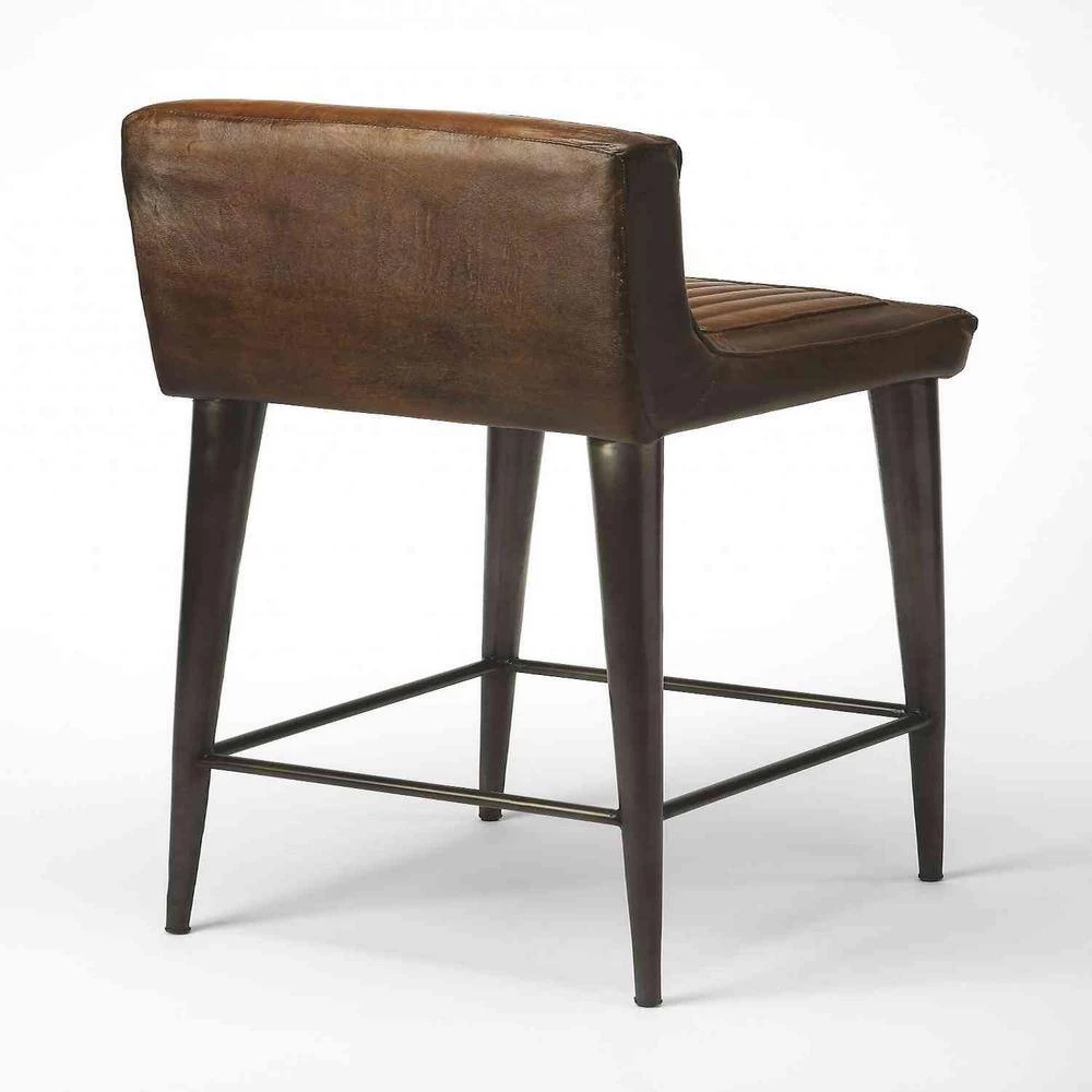 Add a dash of style to your rustic space with this Dark Brown Leather Bar Stool which resembles that of a vintage car seat. Crafted to perfection with flawless hues of brown leather, this stool helps to accentuate your already existing contemporary bar or den. The footrest is positioned at just the right place allowing you to relax your feet. The supple leather brown seating provides comfort and elegance simultaneously. 28 in. x 20.25 in. x 19 in.