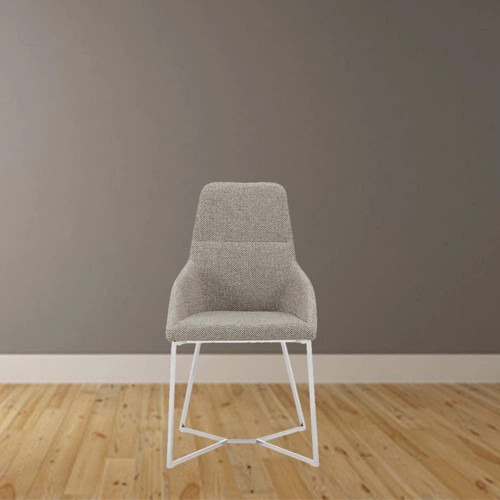 This modern light grey fabric dining chair exudes a dazzling and stylish design. Comfy in design, this chair is upholstered in a handsome grey tweed fabric and features a continuous back and arm design with horizontal stitching. Stitches on edges of the back and arm are evidence of the strength and durability of this modern dining room chair while the zipper at the rear allows for easy maintenance if needed. The geometrically designed sleek and shiny stainless steel legs provide sturdy support. H 36 in. x W 20 in. x D 24 in. x each. Set of 2.