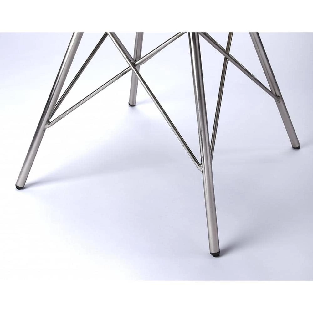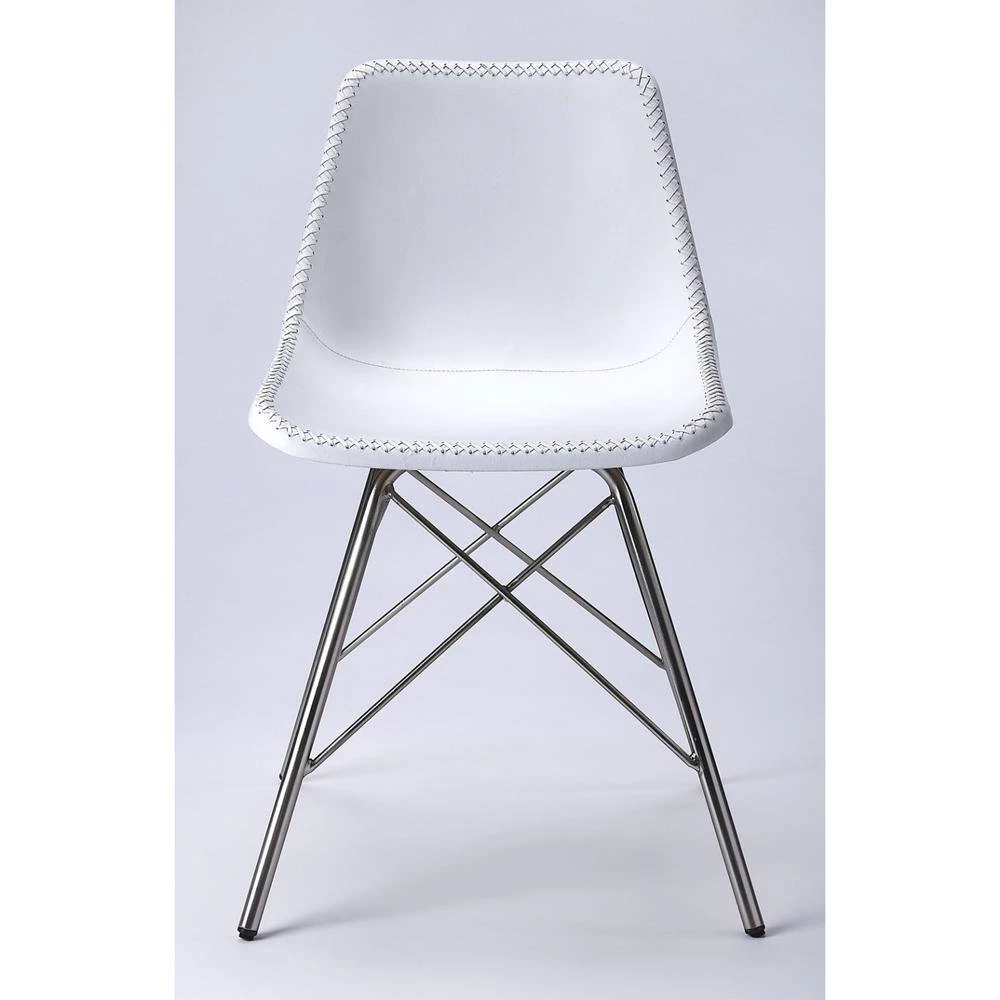 Highlighting your decor has never been easier, the White Leather Accent Chair adds a touch of mid-century modern with a hint of contemporary. Exquisitely molded from pure white leather bucket seats with a cross stitch seam and propped upon Eiffel tower styled nickel plated iron legs, it is perfect to compliment any space, be it your home, office or restaurant. Minimalistic in design this captivating silhouette can be easily transferred from room to room for a better seating experience. 31.5″ x 18″ x 19″