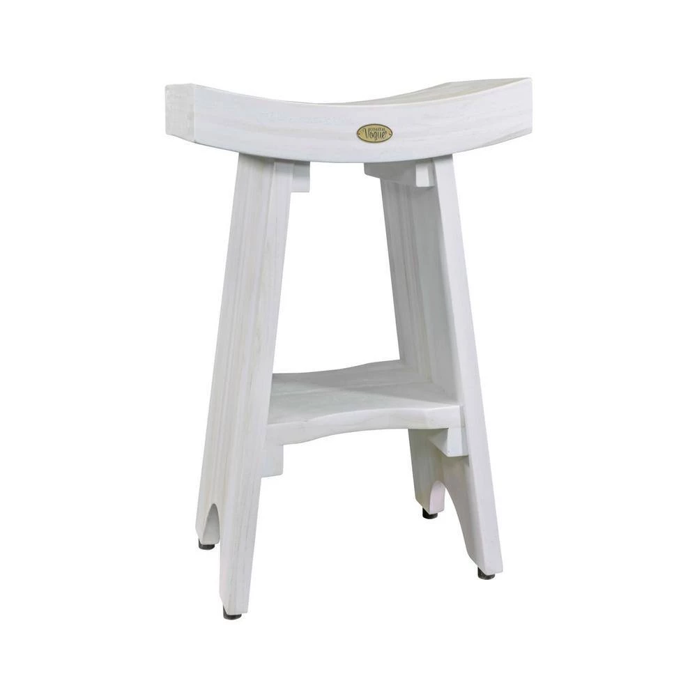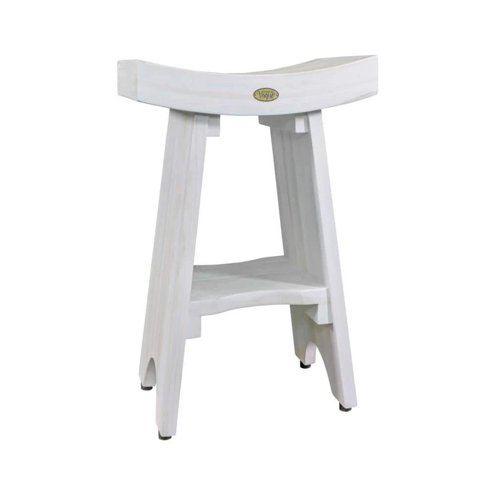 Flared legs provide extra stability and support, preventing tipping. Adjustable height foot pads provide improved safety, allowing leveling on sloped shower floors. Solid teak 18 in. teak shower bench with an included storage shelf at no extra charge, provides a classy Zen-like feel to your shower, bathroom, living room or patio, hence the name Serenity. This teak shower bench has an included convenience shelf which gives added versatility for storage of toiletries, books or other essentials. It has a compact footprint of 18 in. L and 12 in. W, with a comfortable height of 18 in. It is the perfect height to rest your feet on while shaving in the shower.