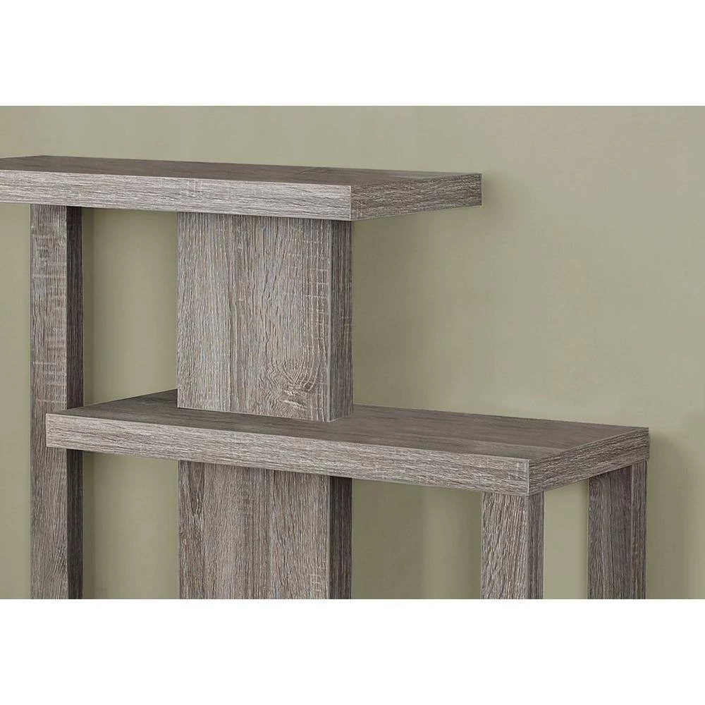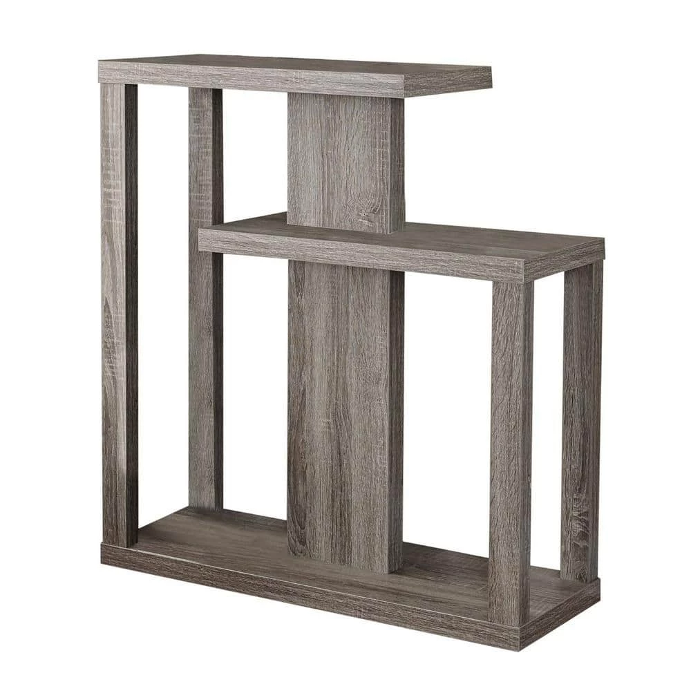 Enhance your living space with this beautifully crafted rectangular dark taupe wood-look hall console table finished on all sides. Featuring clean lines and a 3-tiered open concept design, this modern style console is perfect for dressing up any wall in your home or displaying your favorite decorative items. Features: Table material constructed of wood, 3-tiered shelving for displaying items, Assembly required, Stylish console table ideal for any entryway or hallway. Specifications: Height: 34 in. Width: 31 in. Depth: 11 in. Material: Wood, Frame Material: Wood, Assembly Required: Yes, Cushion Included: No, Maximum Weight Capacity: 70 lbs.