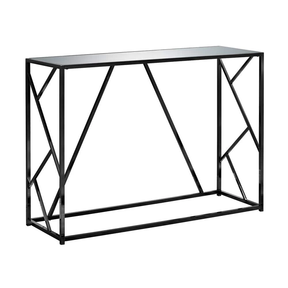 Provide your sofa, or love seat, with the ideal companion with this accent table. This accent table has a sophisticated and sleek design certain to turn some heads as well. It’s truly exceptional and displays suave and down-to-earth beauty. Bring some style to your space with this sleek, rectangular hall console table. Framed with a sturdy black nickel metal base with side metal accents for an added stylish appeal. The spacious clear mirror top surface beautifully reflects any decorative accent piece you place on top giving it that extra sparkle. The simple modern lines and compact design of this console accent table will fit in perfectly for an entryway, hallway, office space, or behind your sofa. Assembly is required.