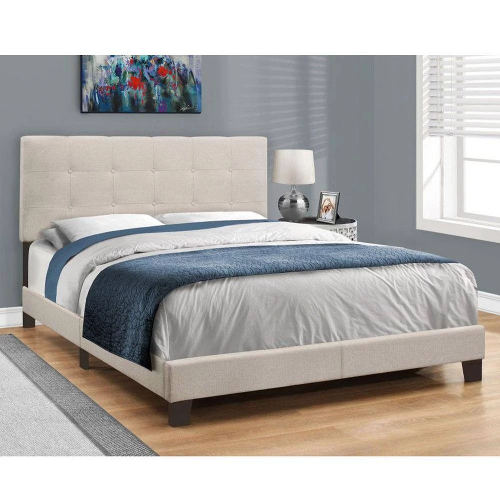 Grace your bedroom, while creating an ambiance of relaxation and providing maximum comfort, with this exquisite and alluring queen size bed. This bed is a high-quality piece, which has an captivating design that will refresh and improve the atmosphere of your home. It’s made from high grade foam, MDF, linen and solid wood, which also contribute to its overall gorgeous appearance, while still giving you all the stability you’ll ever need. As for measurements, they’re 45.75 in. H x 64.25 in. W x 85.25 in. D and it weighs 52 lbs. This lovely bed will be the perfect piece for any decor.