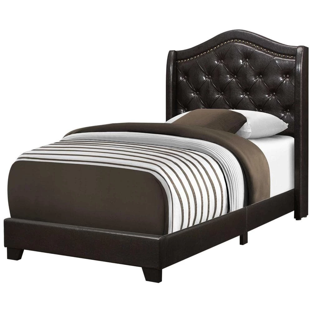 Jasmine Brown Twin Bed with Upholstered Headboard by HomeRoots