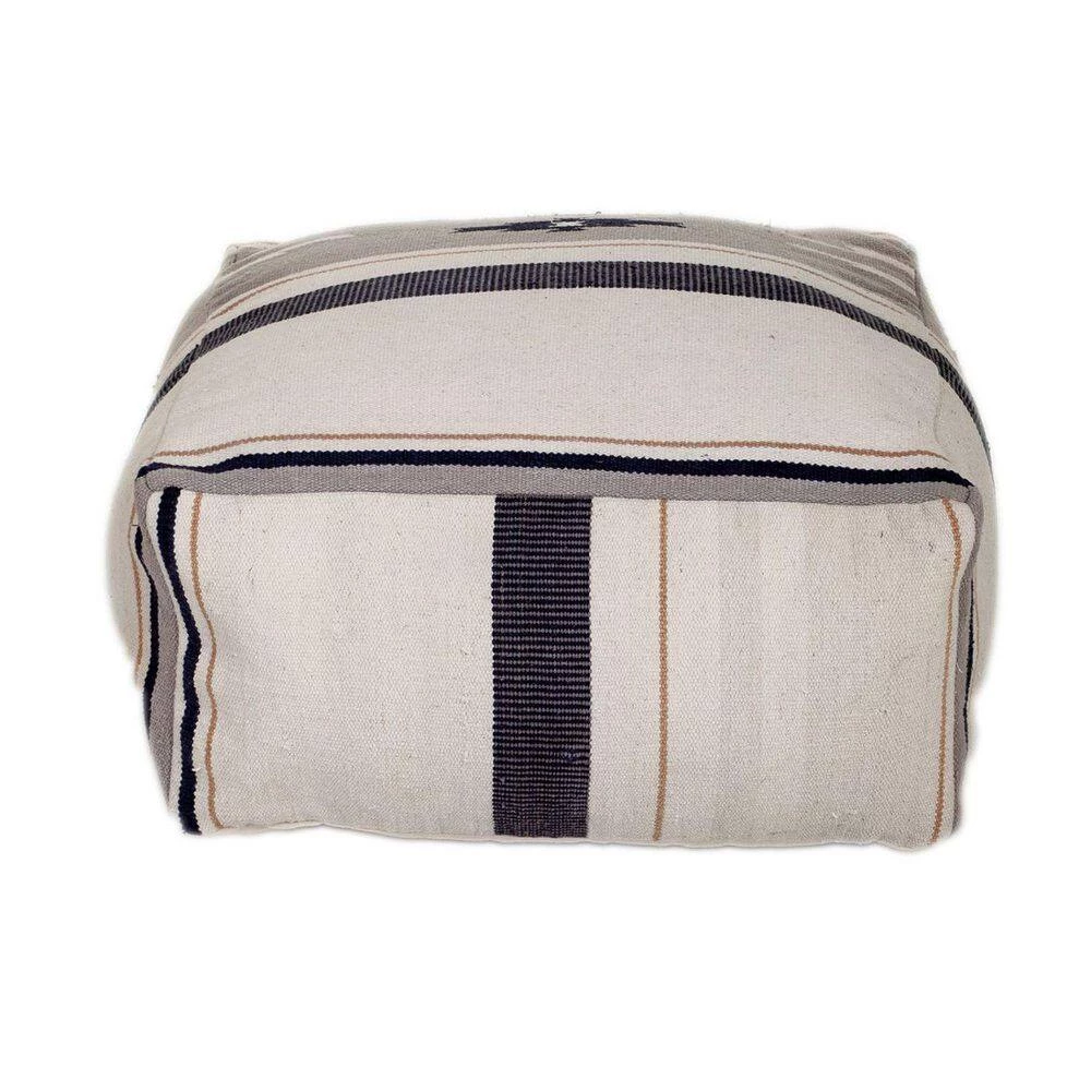 A versatile accent piece, the Aztec Gray Navy and Beige Pouf delivers a subtle yet trendy vibe to your lounge area, bedroom, or office, bringing the entire room together efficiently. The stripe and aztec geometric design gives this pouf a neutral yet cool design aesthetic. Made from PV cotton, this is a solid cushion that you can use not just as additional seating, but also for other purposes such as a make-shift table, or footrest. 24 in. x 24 in. x 12 in.