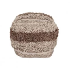 Jordan 18 in. D x 18 in. H x 18 W Boho Shaggy Khaki Textured Cotton Pouf by HomeRoots