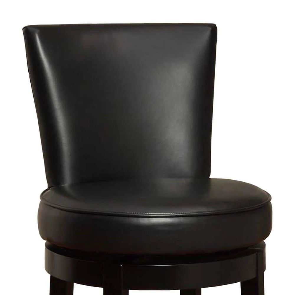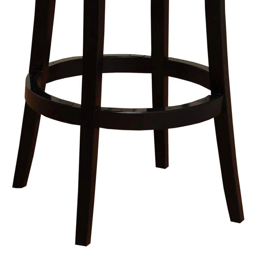 Adopt a next-level design in your space with this 30″ Faux Leather Round Seat Black Wood Swivel Armless Bar Stool. The strong black wood frame provides flares slightly at the base and features a full round footrest for leg support. The sturdy armless frame is accompanied by the beautiful soft leather upholstery on the round seat and rectangular tall back which makes your space look more stylish than ever. The stool features a 360-degree swivel effect that make you switch directions before you know it, making simultaneous conversations with other people in the room very easy. 43″ x 22″ x 22″