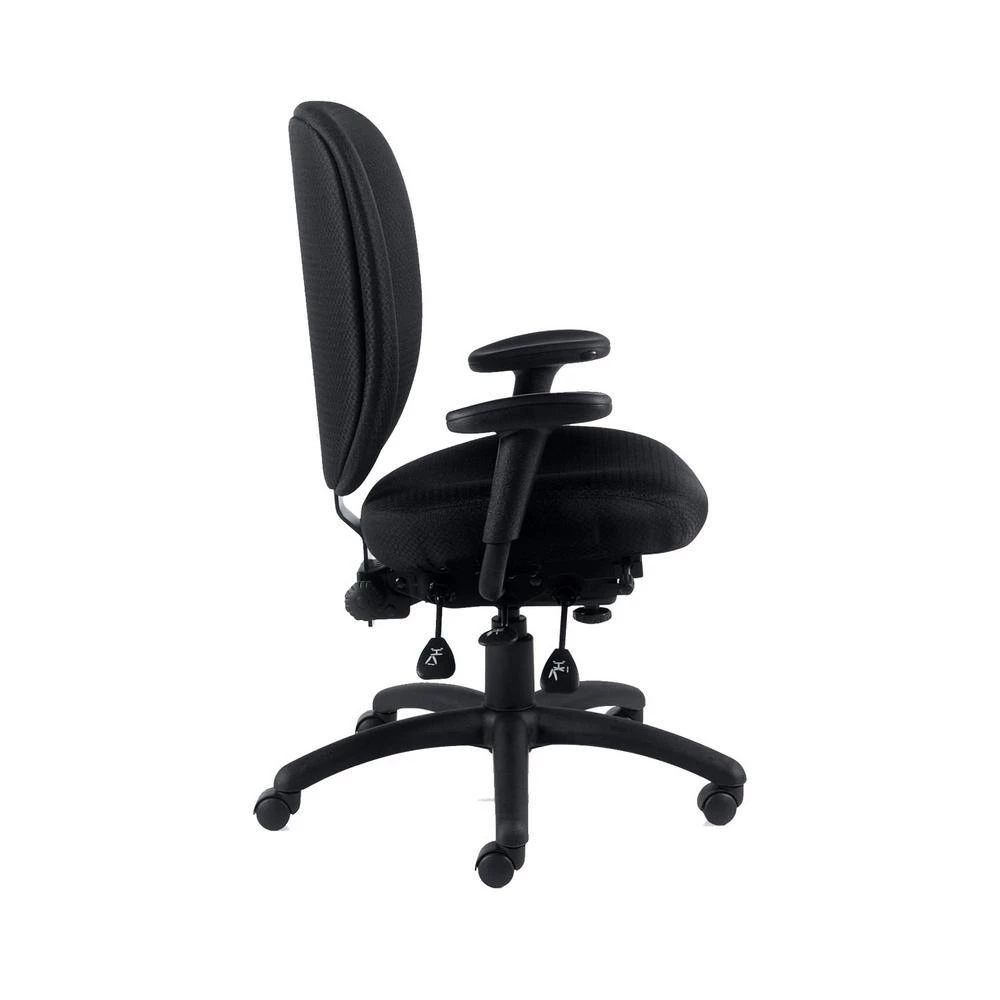 Complete comfort, elegance, and flexibility for your office work. This chair gives you absolute control of your seating with adjustable seat, back angle, arms, height, and tilt mechanisms. Now you can work long hours without any form of discomfort; simply set it to a position that feels natural for you. The fully padded seat and back gives you the best cushioning effect, while the caster wheels provide mobility. Its superb leather upholstery and black finish creates a bold, professional look in your office. Dimensions: 26 in. x 25 in. x 37 in.