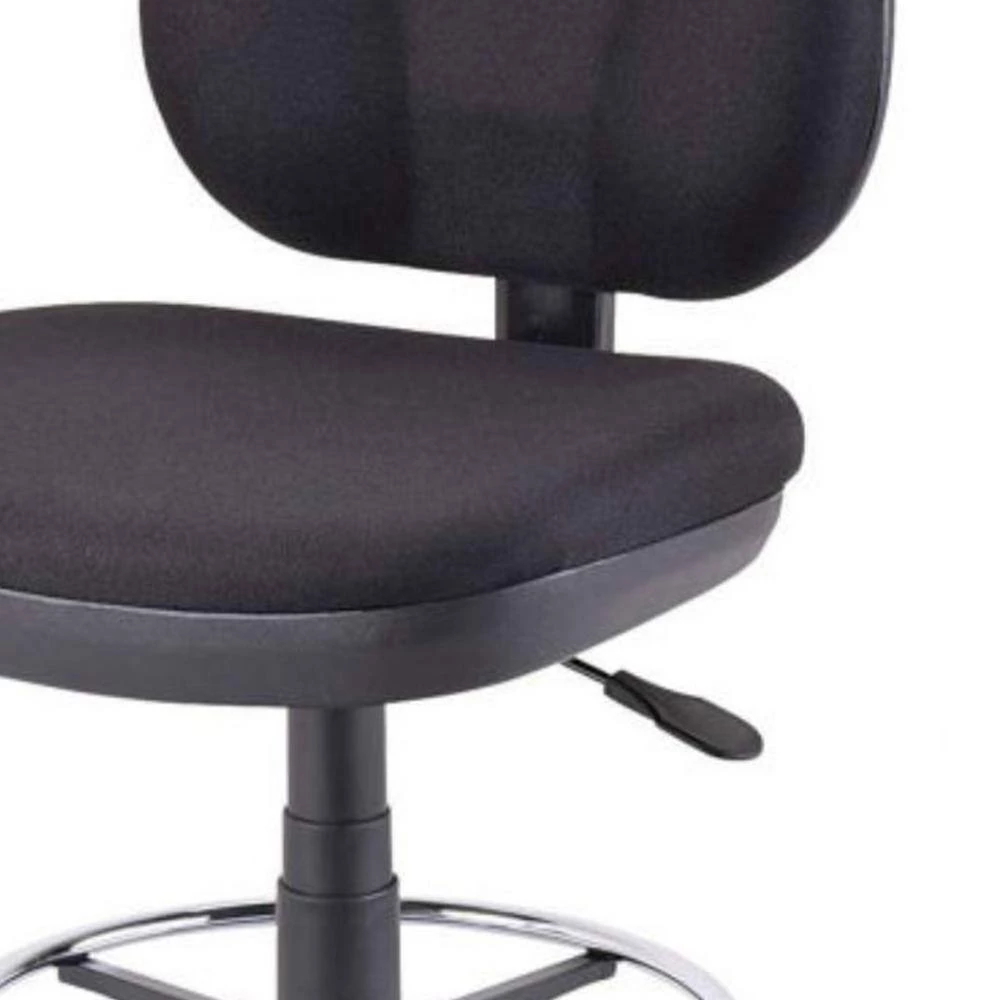 Armless and worth it. Without arms, this office chair helps you sit as freely and relaxed as you wish while you get the job done; no cause for an arm. Both the waterfall seat and back are well padded and upholstered in soft black fabric, which gives you a great cushioning experience. You gain control of your position with features such as the adjustable seat height and back height. The chair is supported on a solid base with chrome footrest and caster wheels, and its black finish makes a bold statement in your office. Dimensions: 20 in. x 24 in. x 41 in.