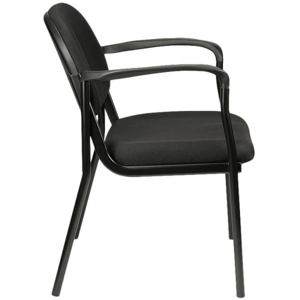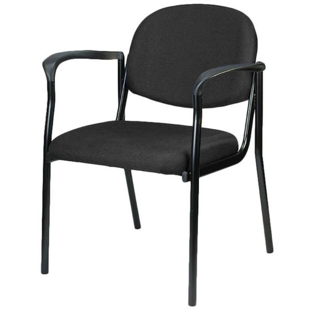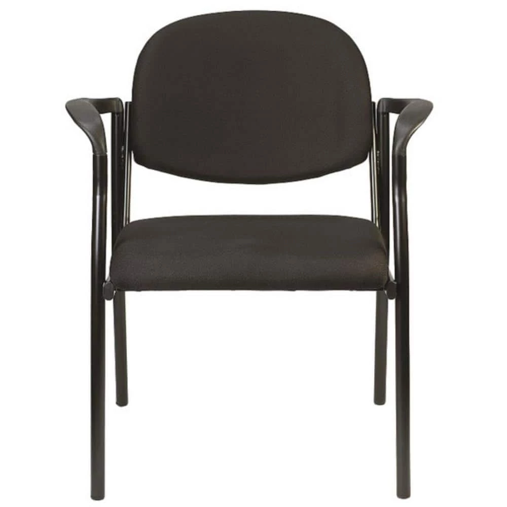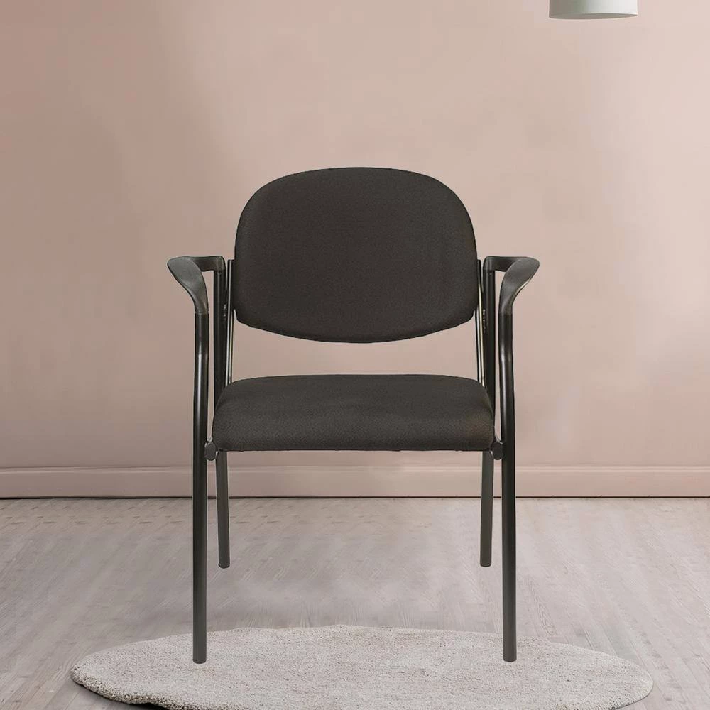 The best offer for your guests while they wait is a comfortable chair like ours. With its well padded seat, upholstered in soft black fabric, your office guests get a warm welcome. It rests on solid legs, and its black finish makes for a bold, elegant and professional look in your office. Dimensions: 26.8″ x 19″ x 32″.