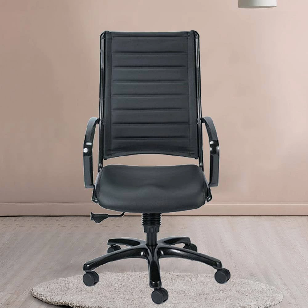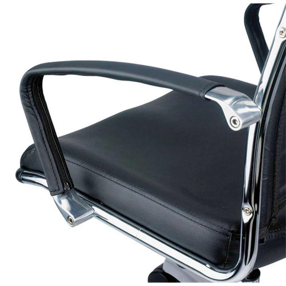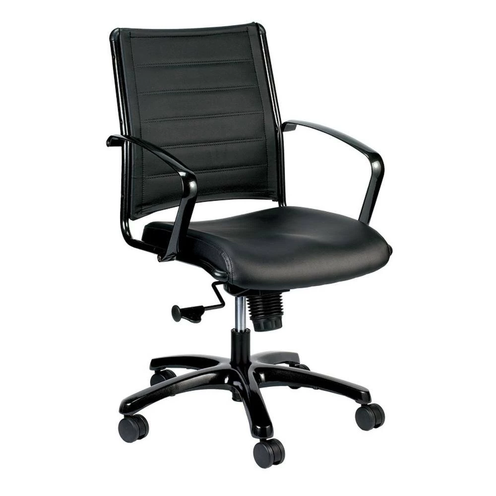 Designed with back and well padded waterfall seat, upholstered in soft black leather, our office chair keeps you comfortable as you work. It is built to last and rests on a solid base with caster wheels so you can easily roll it in place. Flexibility is provided by the adjustable height, tilt tension control, knee tilt, and tilt lock mechanism. Meanwhile, its black finish makes for a bold, elegant and professional look in your office. Dimensions: 22 in. x 25.5 in. x 41.5 in.