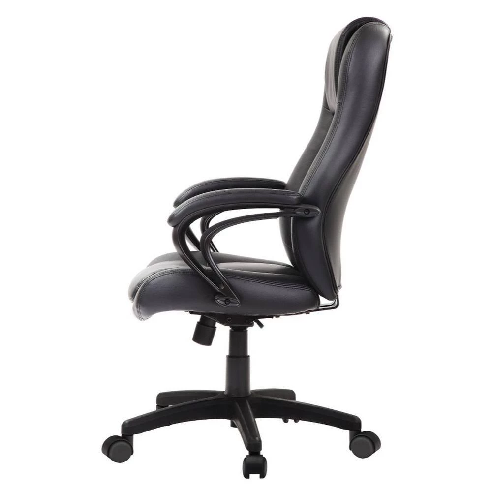 This office chair is designed with a high back, and well padded waterfall seat, upholstered in leather to keep you comfortable as you work. Features such as the adjustable SH, tilt, and mattress spring technology make the chair really flexible for use. No more discomfort as you work; simply set it to suit your needs. It rests on caster wheels and its black finish makes a bold statement in your office. Dimensions: 26.37 in. x 27.55 in. x 41.33 in.