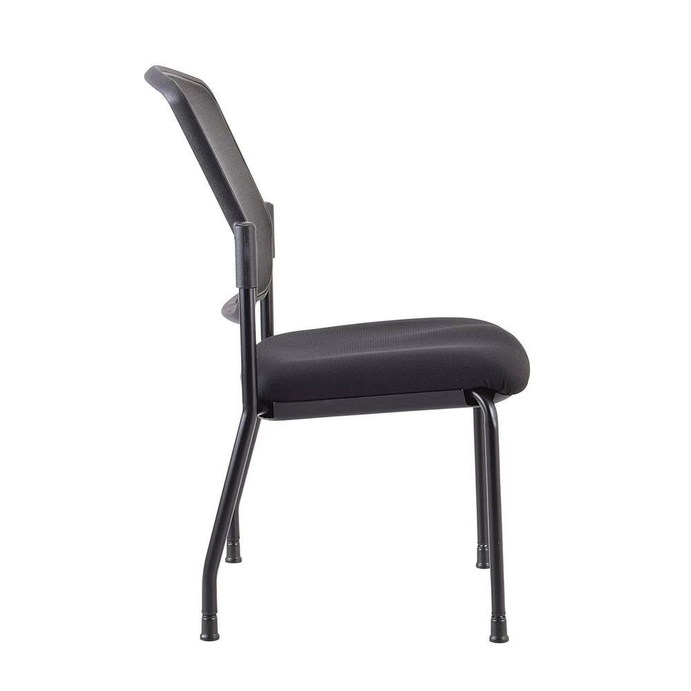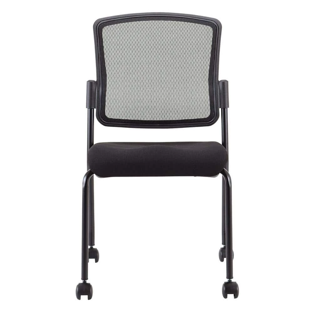 Good looking, airy and comfortable. Designed with mesh back and well padded seat, upholstered in soft black fabric, our guest chair keeps your guests relaxed at your office and comfortable as they discuss with you. It rests on solid legs with caster wheels so you can easily roll it in place, while its black finish makes for a bold, elegant and professional look in your office. Dimensions: 19″ x 25″ x 35.5″.